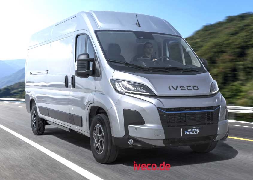 Is it a Fiat Ducato? A Peugeot Boxer? A Citroën Jumper? Or perhaps the new Opel Movano? No, no, and again no. Here we see the brand-new Iveco eSuperJolly. Its name might sound like something out of a video game, but this large van is a seriously serious new model from the Iveco Group, which is collaborating with Stellantis. Iveco only sells this van as an electric vehicle; those looking for a diesel should consider the Iveco Daily.