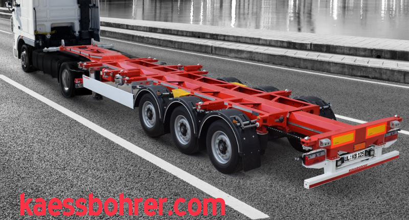 The K.SHG AVH container trailer, with a gooseneck, is extendable at the front and rear. This chassis is designed for multifunctional and safe operations and ensures optimal weight distribution for containers from 20 to 45 feet.