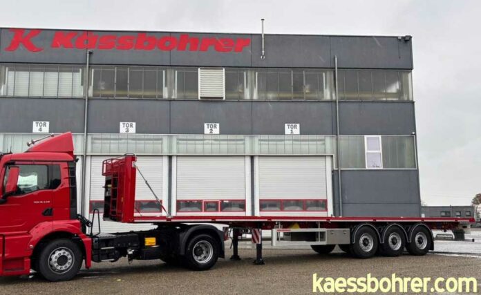 Kässbohrer K.SPS 3 – platform semi-trailer with high payload. Flatbed semi-trailer, lightweight, stable.