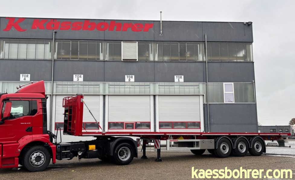 Kässbohrer has supplied a 3-axle platform semi-trailer (K.SPS 3) to Gebr. Markewitsch GmbH from Nuremberg, Germany. This vehicle features high-strength and flexible load securing, suitable for concentrated, wide, and mixed loads and their combinations. The combined use of stanchion holes, floor and side tie rings, and the patented K-Fix system allows operators to adapt the load securing within the same vehicle to various load types and loading situations.