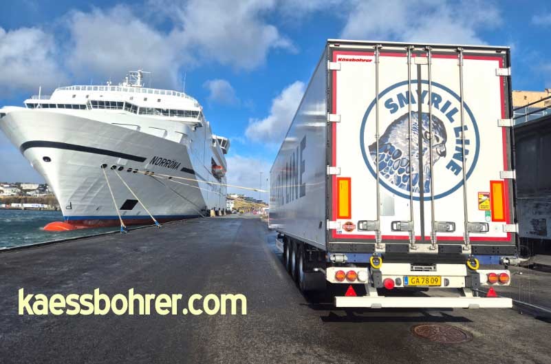 Ferry semi-trailer, highly insulated semi-trailer with refrigeration unit and special modifications for the transport of seafood. Kässbohrer has supplied 75 of these Ferry Reefer semi-trailers to Smyril Line, the shipping and forwarding company active in Northwest Europe with various types of transport. Smyril had already been using this type of trailer for the past five years and was so enthusiastic about it that they placed a large order.
