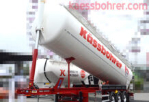 Kässbohrer K.SSK 60 — Kässbohrer’s lightest tipper silo trailer. Tipper silo trailer, maximum payload 32.75 tons, volume 60,000 liters. With a tare weight of only 6,250 kg, the K.SSK 60 is the lightest 60 m³ tipper silo trailer on the market. The optimized discharge geometry and smooth aluminum surfaces ensure a continuous and smooth material … Continue reading Kässbohrer K.SSK 60 — tipper silo trailer, capacity 60 m3