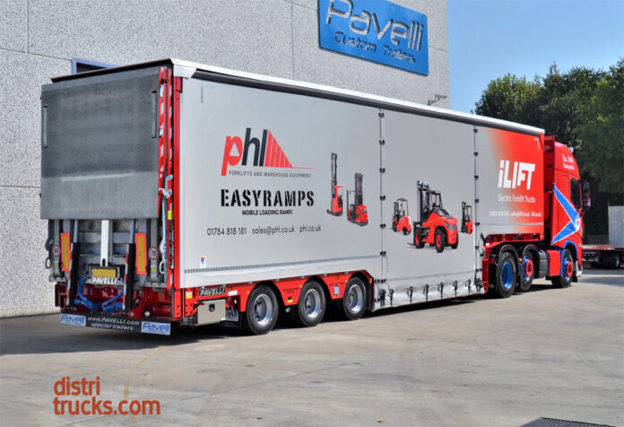 Pavelli Advance — 3-axle curtainsider low loader. Low loader for transporting machinery, equipped with a curtainsider.