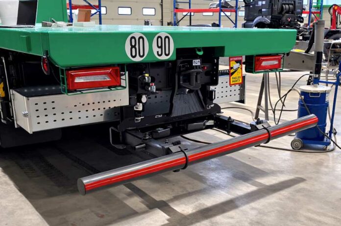 High-quality, electrically operated bumper bar for the rear of trucks, manufactured by Pommier from France. The main difference compared to most extendable bumpers: the E-Xpand P33 operates electrically instead of hydraulically. This offers assembly advantages for the bodybuilder (faster to install) and ensures greater operational reliability for the end user.