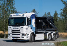 Scania 27G B 6×2*4 NB — electric 6×2 chassis. Three-axle chassis, electric drive, steered rear axle, 270 kW. The Scania 27G is an electric chassis with a 270 kW/365 hp electric motor. The vehicle pictured has a 600 kWh battery pack. Axles 1 and 3 are steered, axle 2 is driven. Also available as a … Continue reading Scania 27G B 6×2*4 NB — electric 6×2 chassis