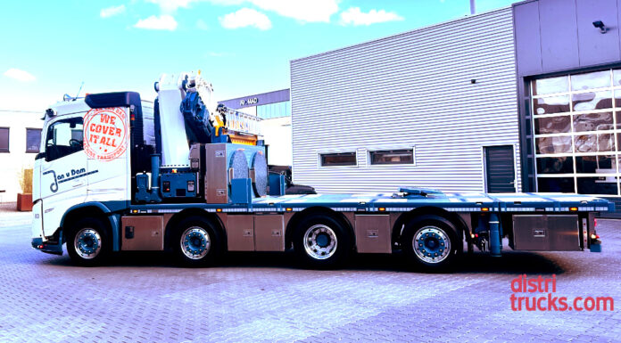 The FH Aero in the photo was delivered by Van Dijk Trucks, Netherlands, to Jan van Dijk Machinetransport in Oudewater (NL). The Volvo is equipped with a Remote Driving System for remote control.