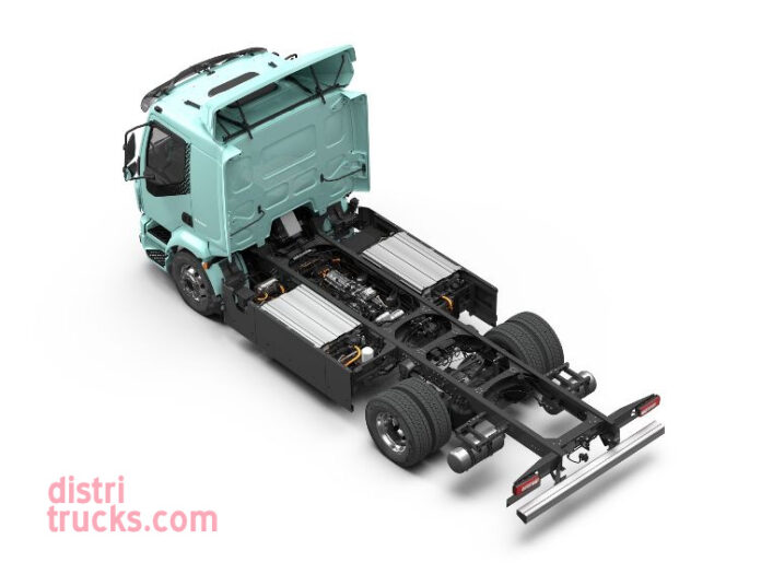 This city version comes standard with four battery packs, with a combined usable capacity of 145 kWh, good for approximately 200 km (depending on driving style and conditions). The shortest available wheelbase is 380 cm, the longest 650 cm. The four batteries are mounted in pairs, one above the other; in the photo, it looks like two batteries.